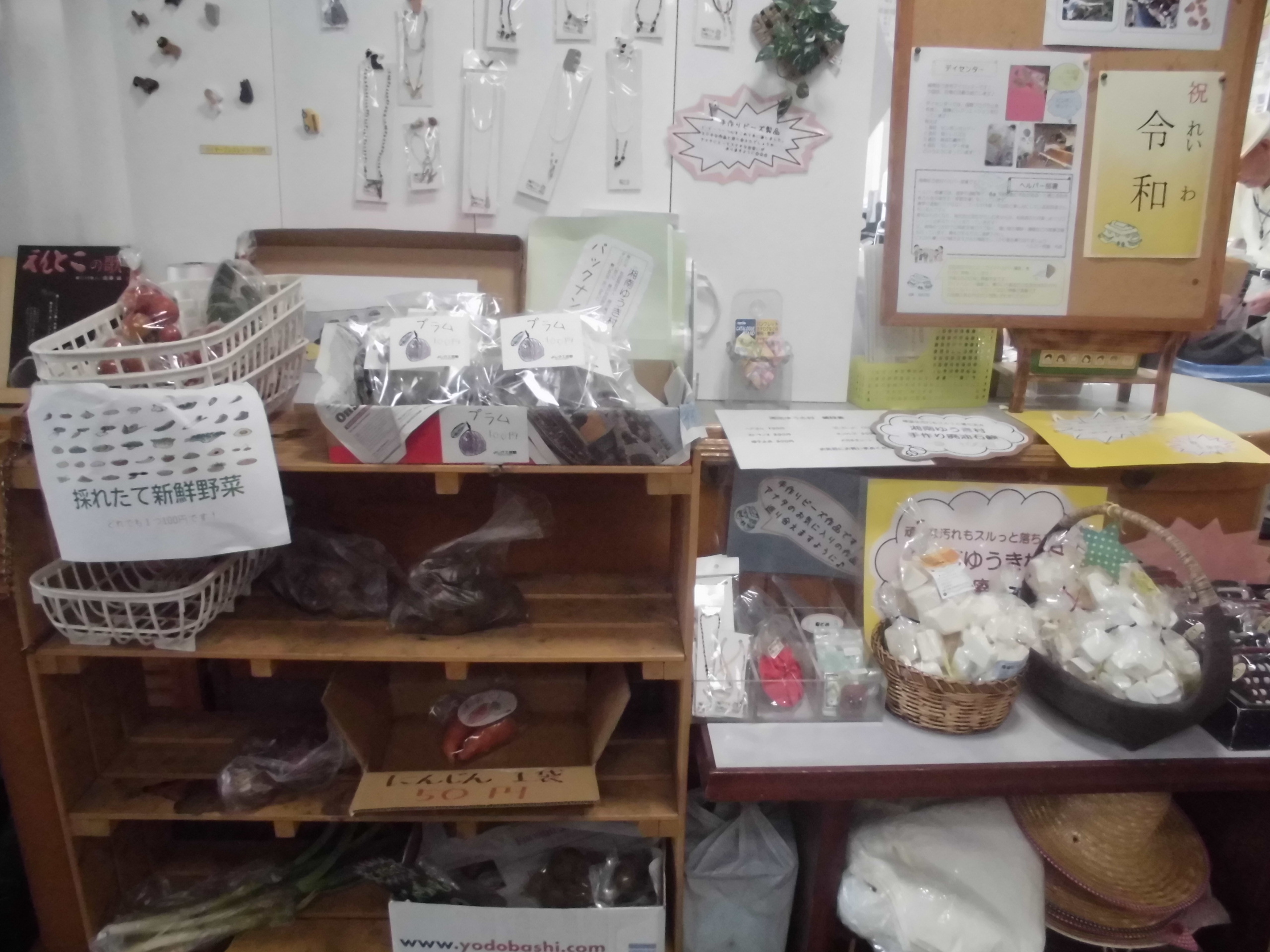 よし介はポストカード、ゆうき村は廃油石鹸が並んでいますよ~!