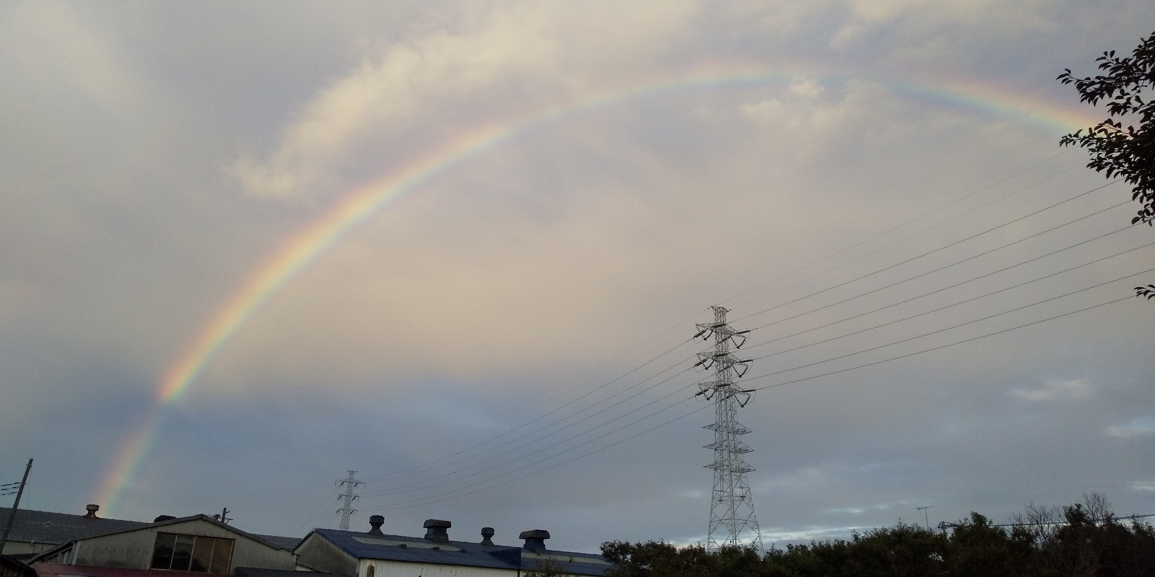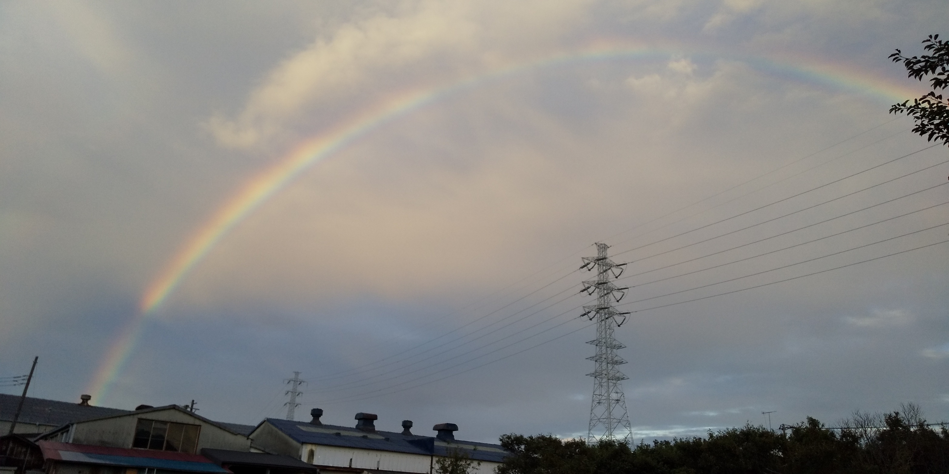 月曜日の夕方、よし介の前に大きな虹がかかっていました!