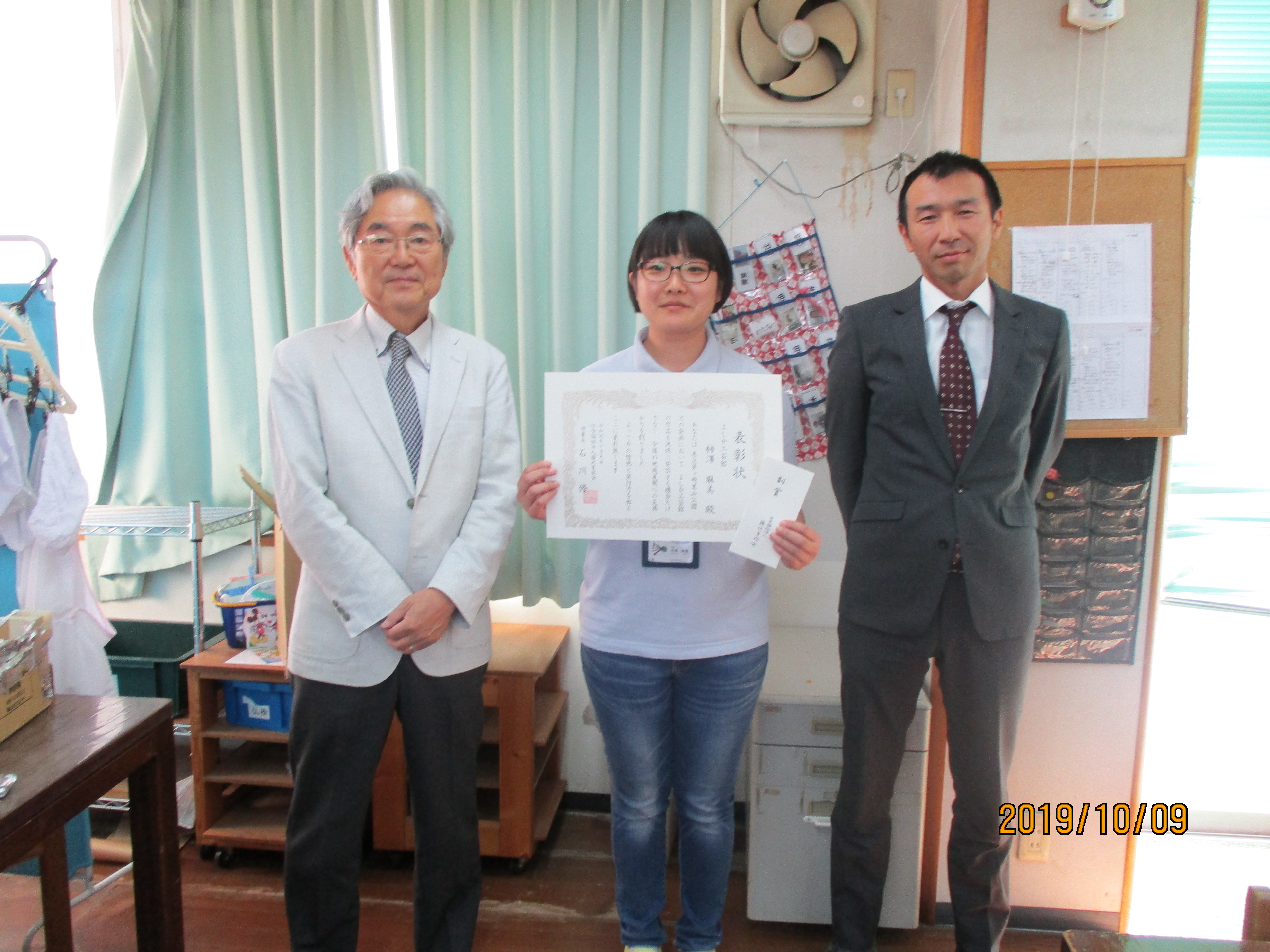 表彰式は、よし介工芸館の活動室で利用者の方々も交えて行いました。これからもよし介工芸館は、利用者の素晴らしい感性を地域に伝えていきたいと思います。(よし介工芸館:儀保治男)