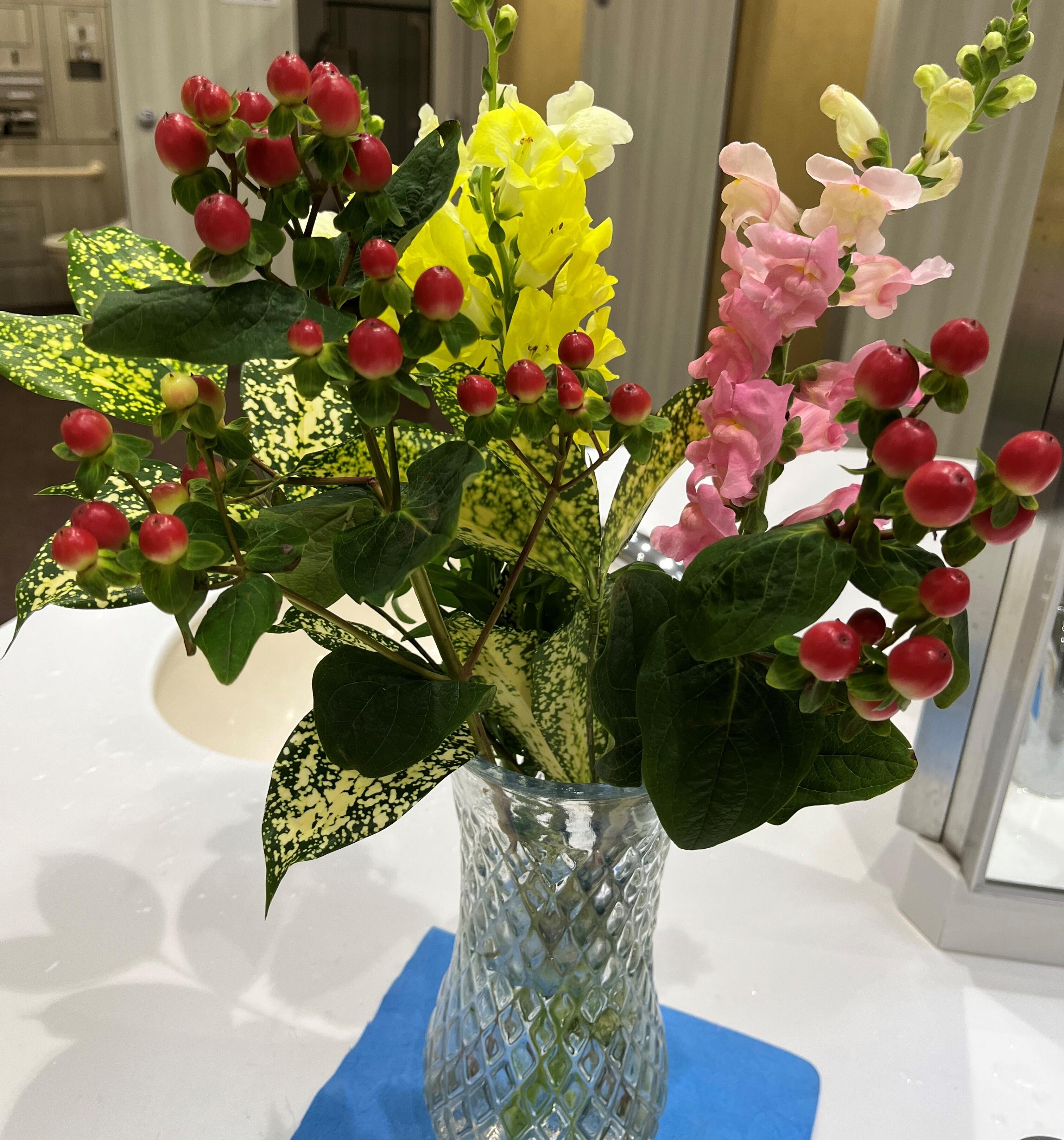 施設のスタッフが「立ち寄った人に少しでも癒しを」と思って花を替えてくれているのかもしれません。