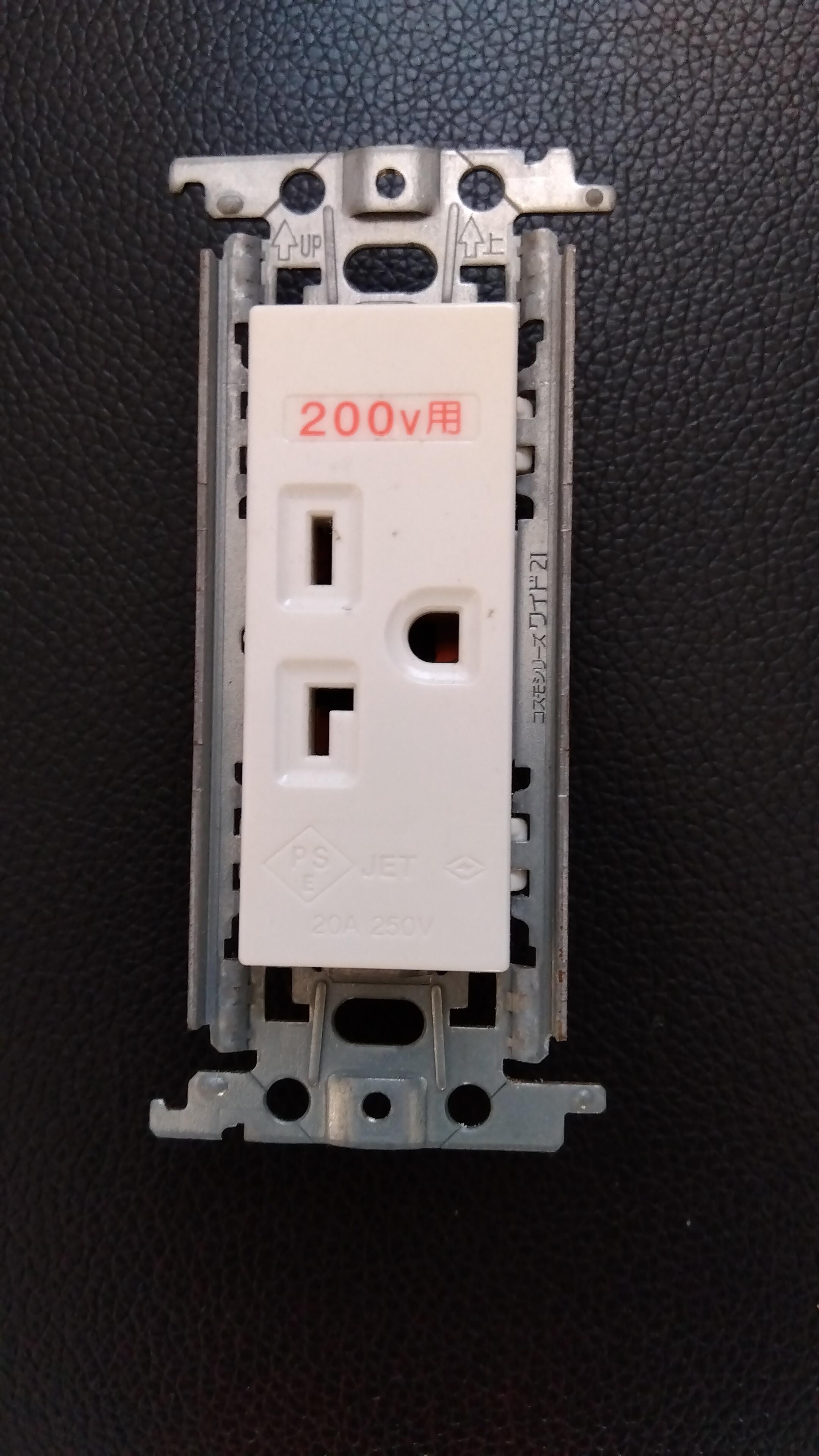 作業後、200Ⅴと記載されたコンセントの挿し口が床に転がっていたため、そっと拾い上げ今の気持ちを忘れないよう目につく場所に置く。