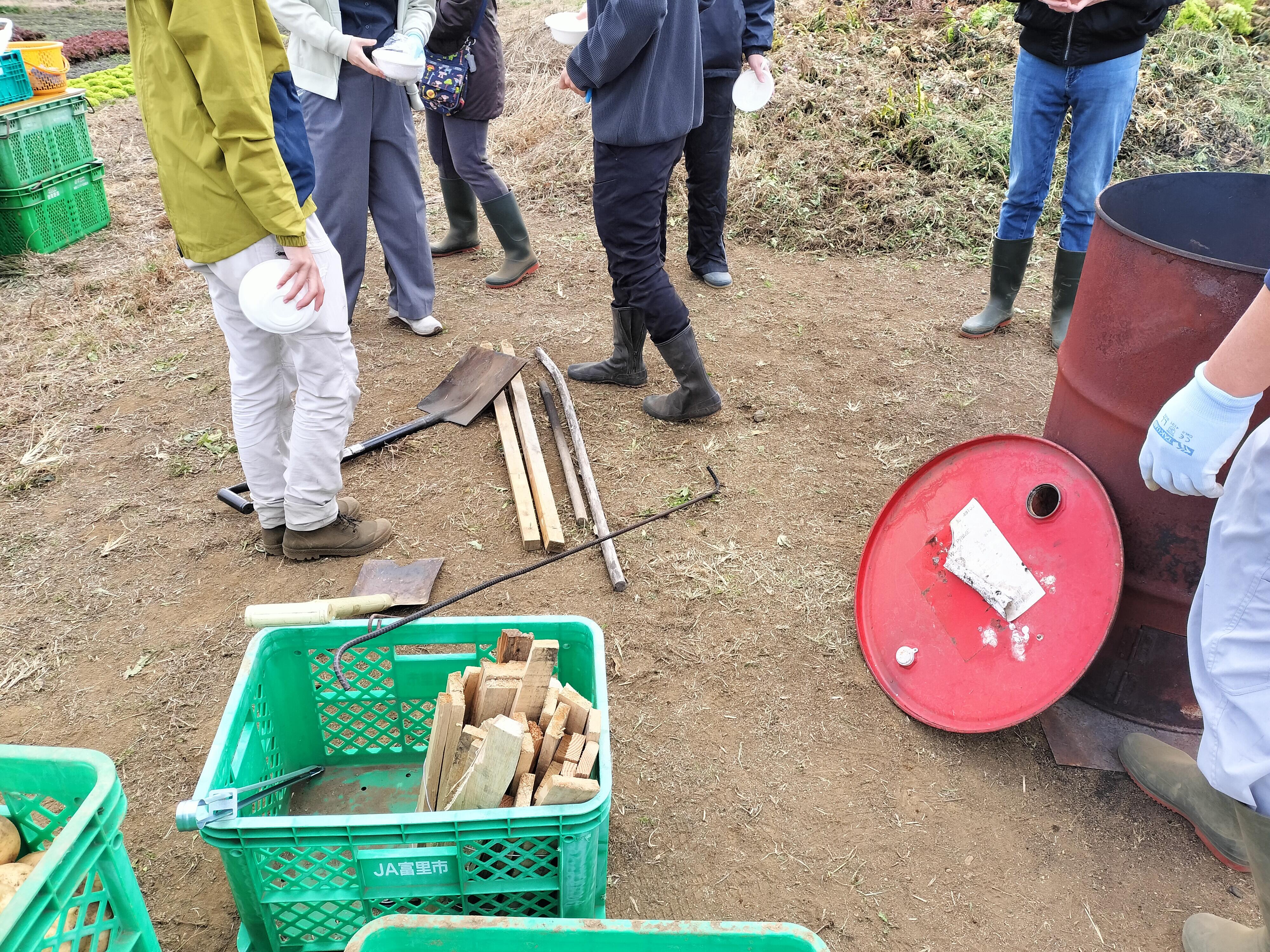 今回はご厚意で収穫の後に焼いもと焼ジャガイモを振舞っていただきました~~~~