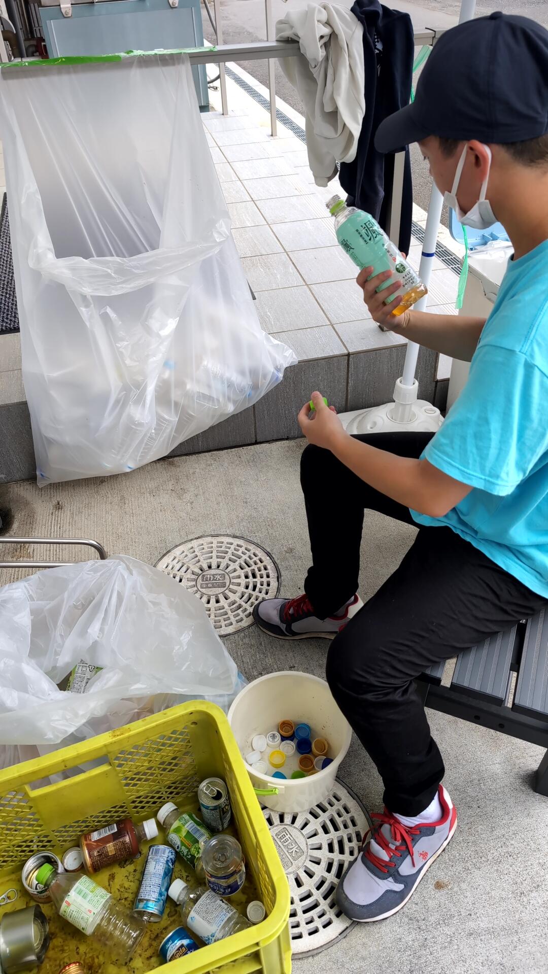 湘南ジョイフルでは地域清掃で拾ったペットボトルや缶などを洗って分別しています。