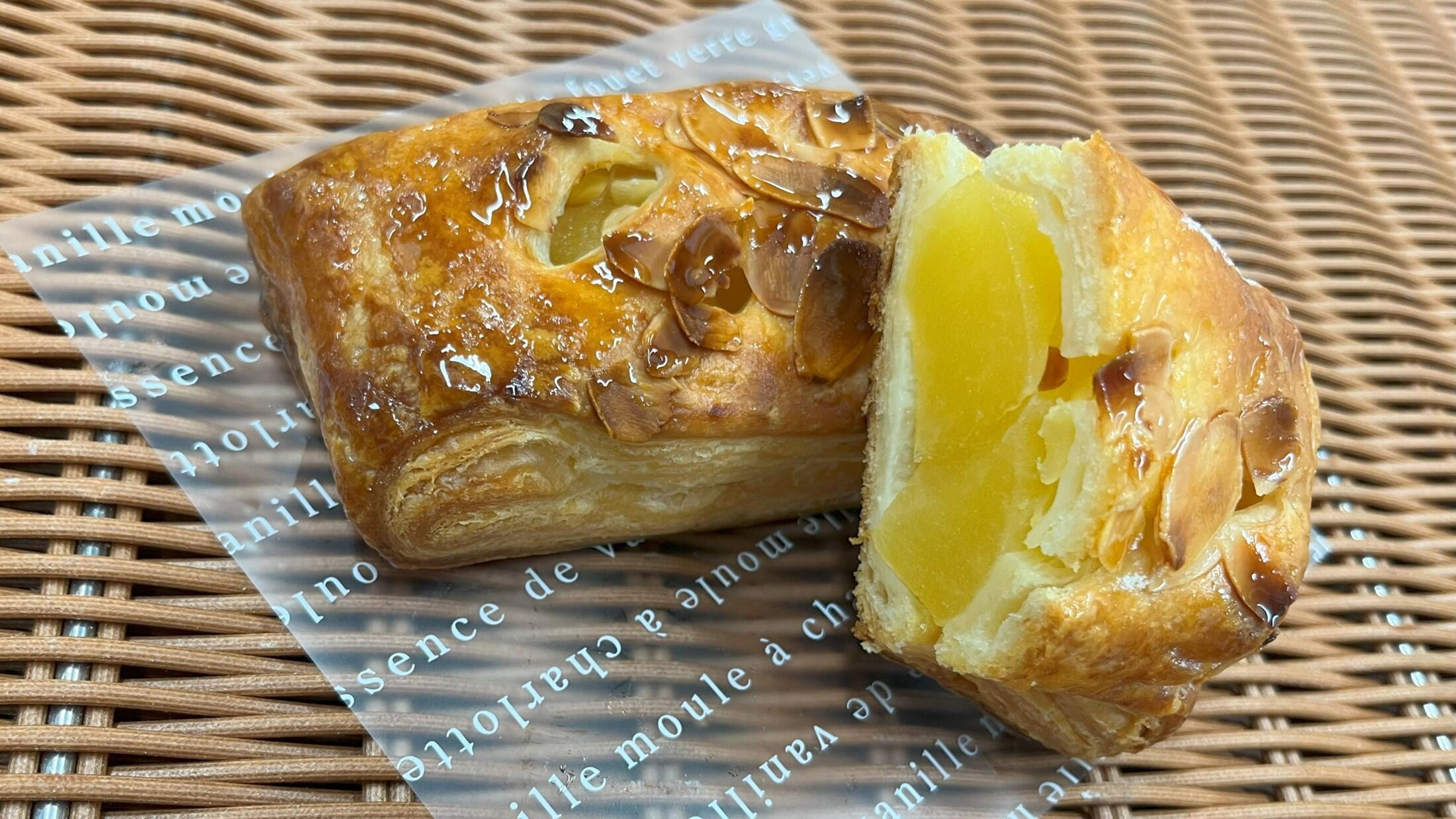 サクサク生地に国産リンゴを大きくカットして詰めた "ロングアップルパイ" に仕上がりました。