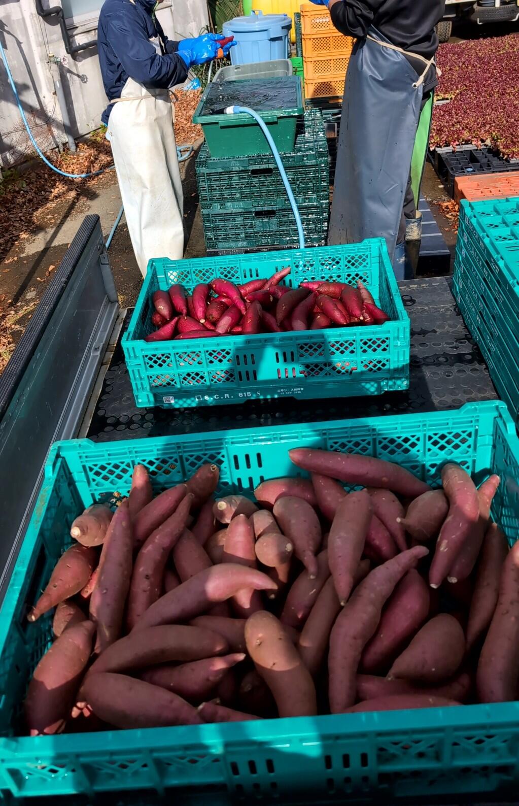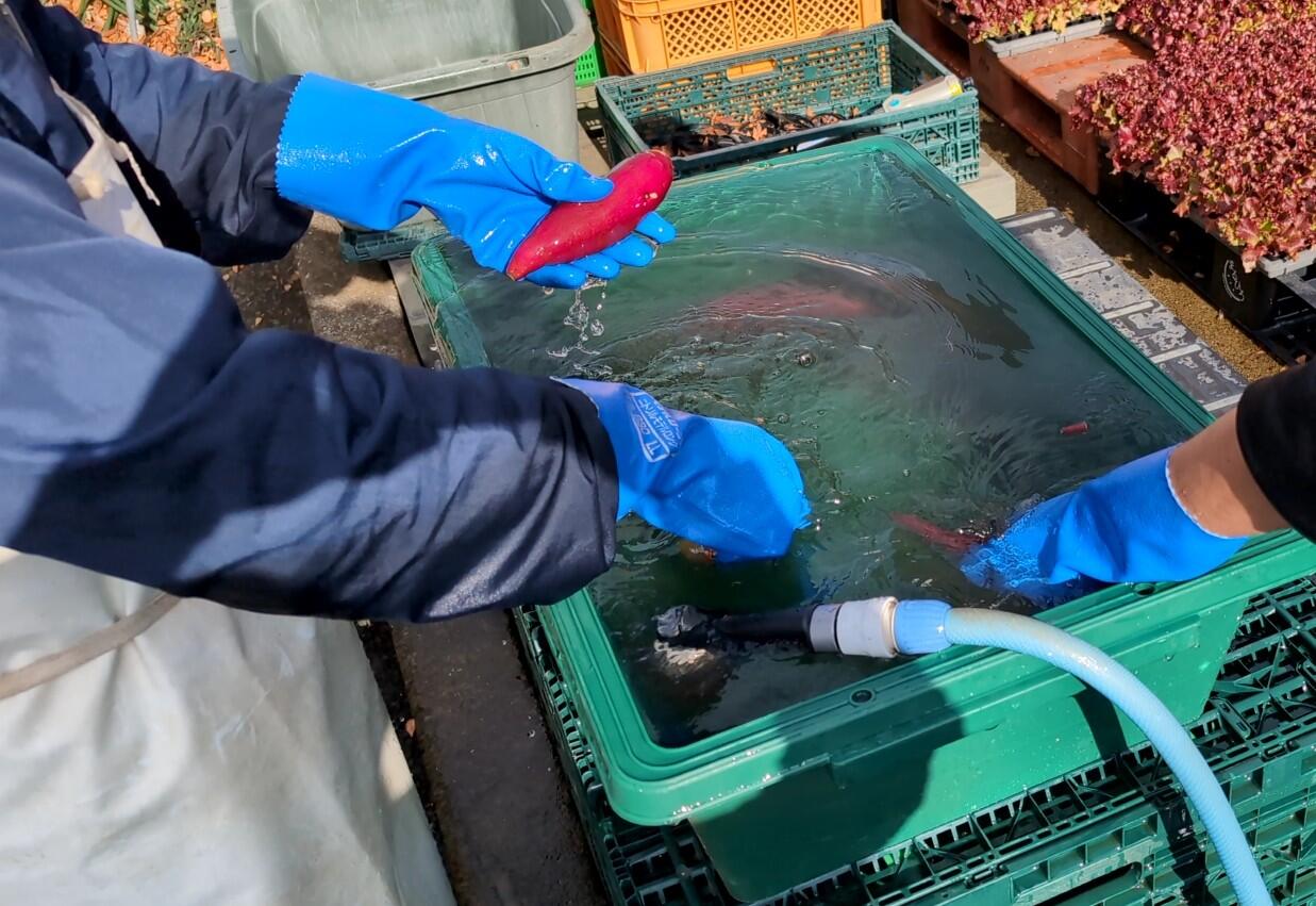 今回は、収穫してから数週間寝かせたさつま芋を洗う作業です。