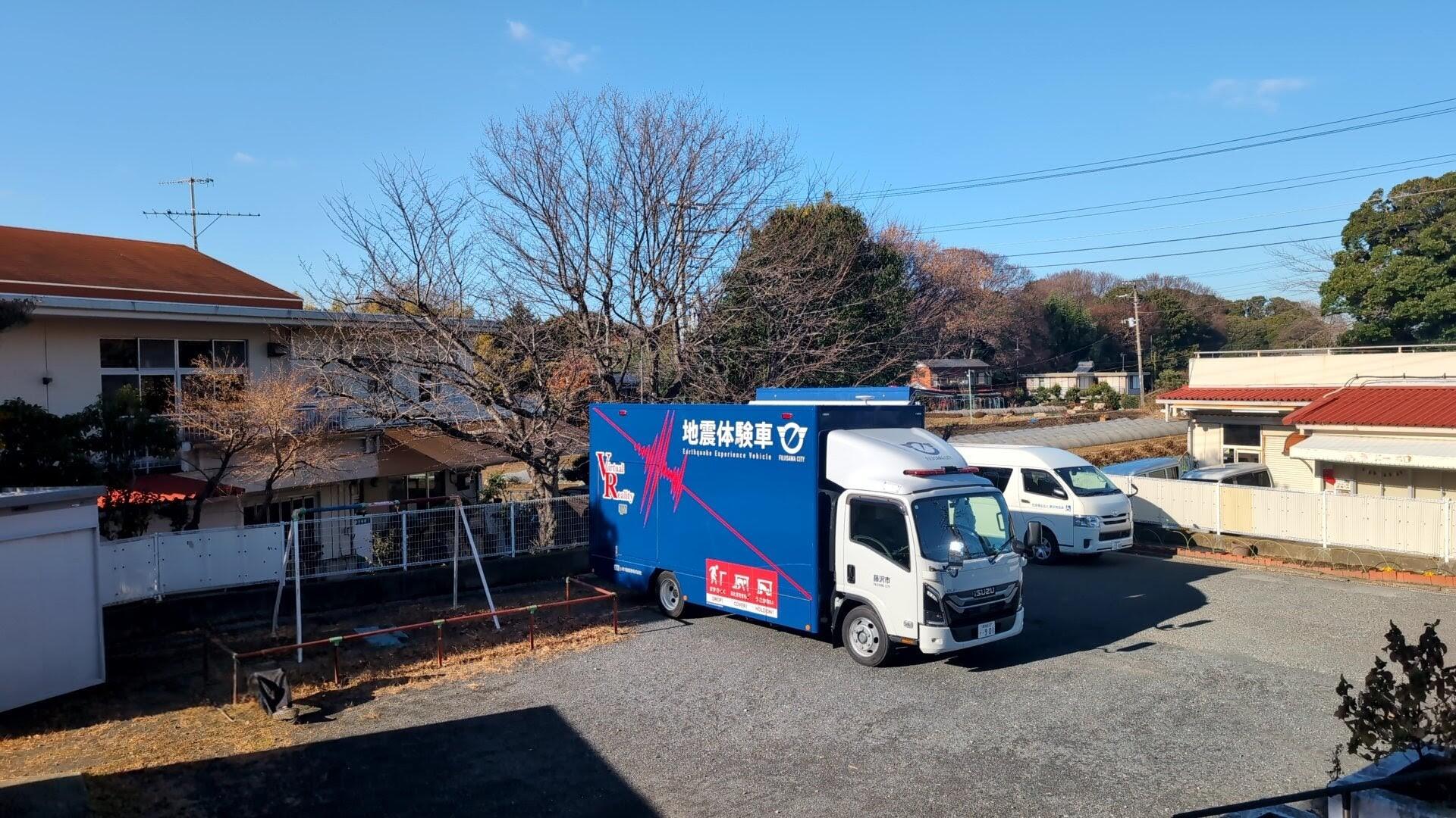 本日12/16午後に湘南セシリアとみらい社合同で藤沢市の災害対策課より起震車を呼び、震度6強の地震体験をしました。