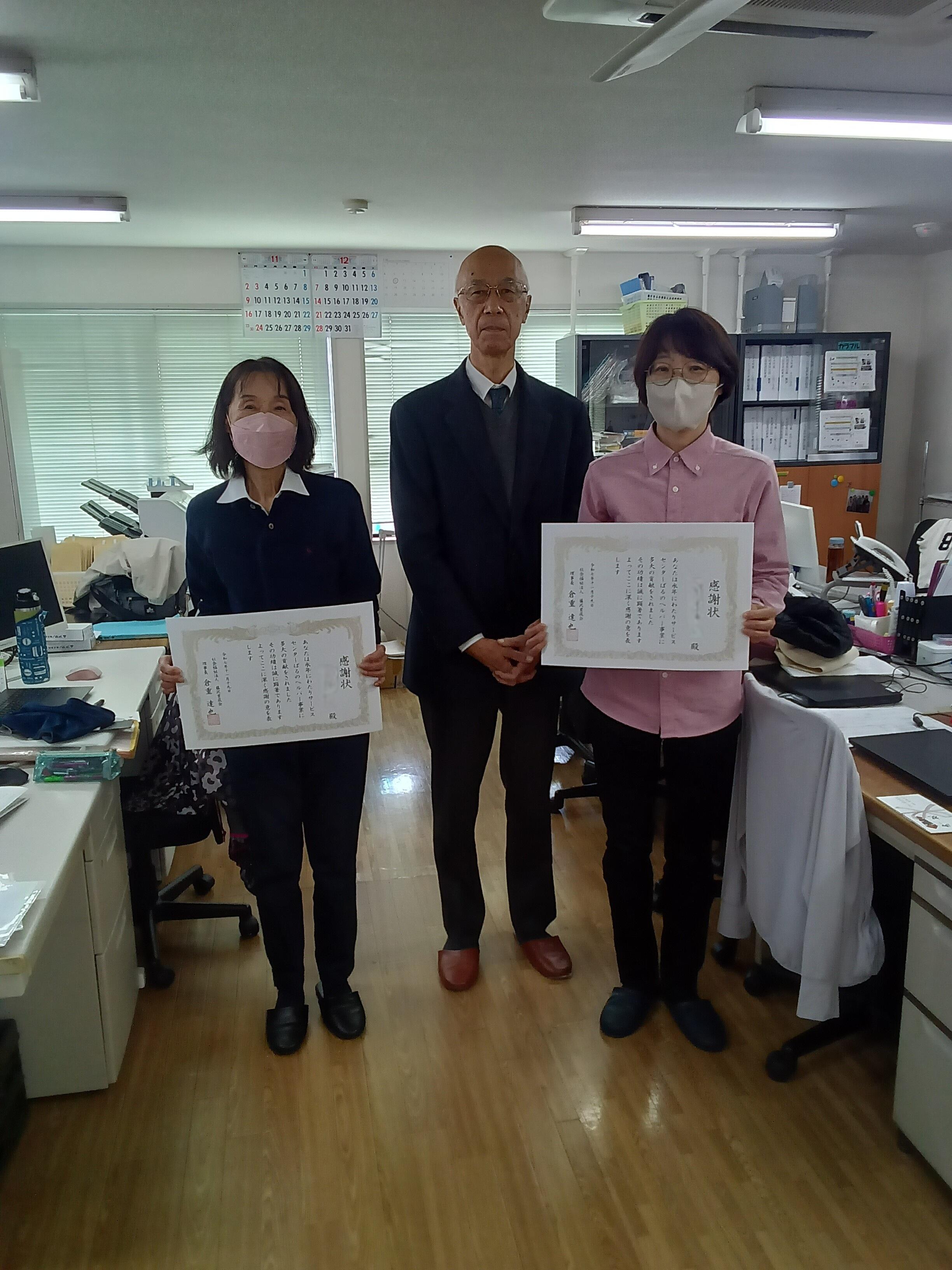 今回感謝状を贈らせて頂いたお二人は、事業所で開催しましたガイドヘルパー養成研修を同時期に受講され活動して頂いておりました!