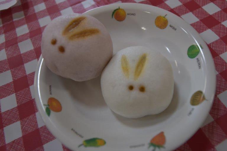 うさぎさんの紅白饅頭を召し上っていただきながら